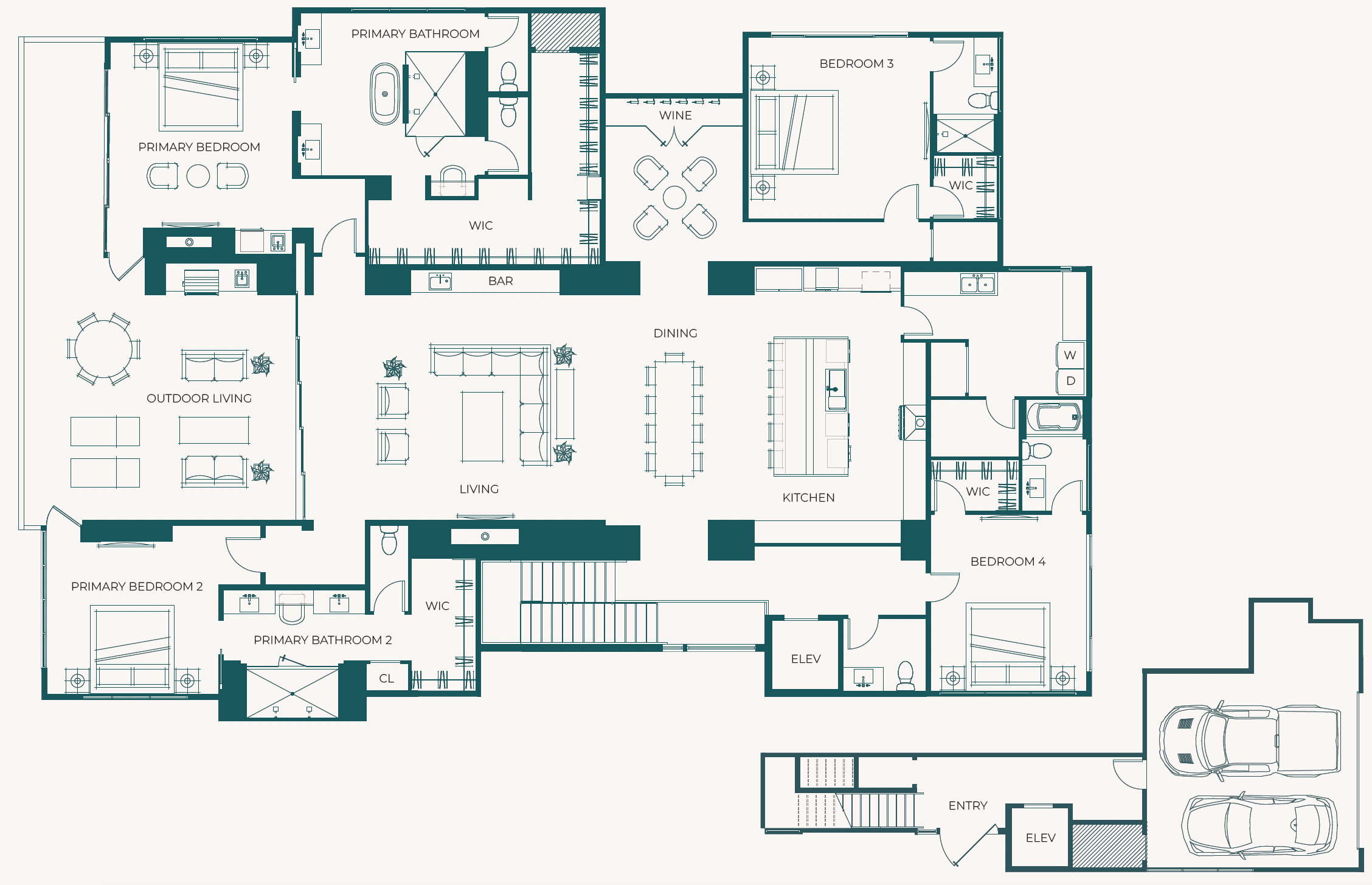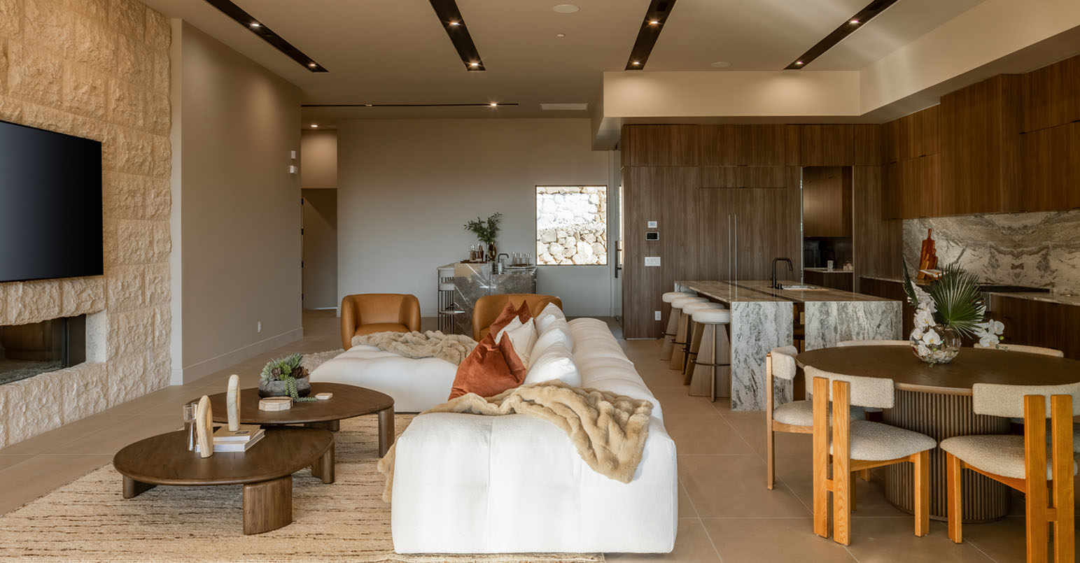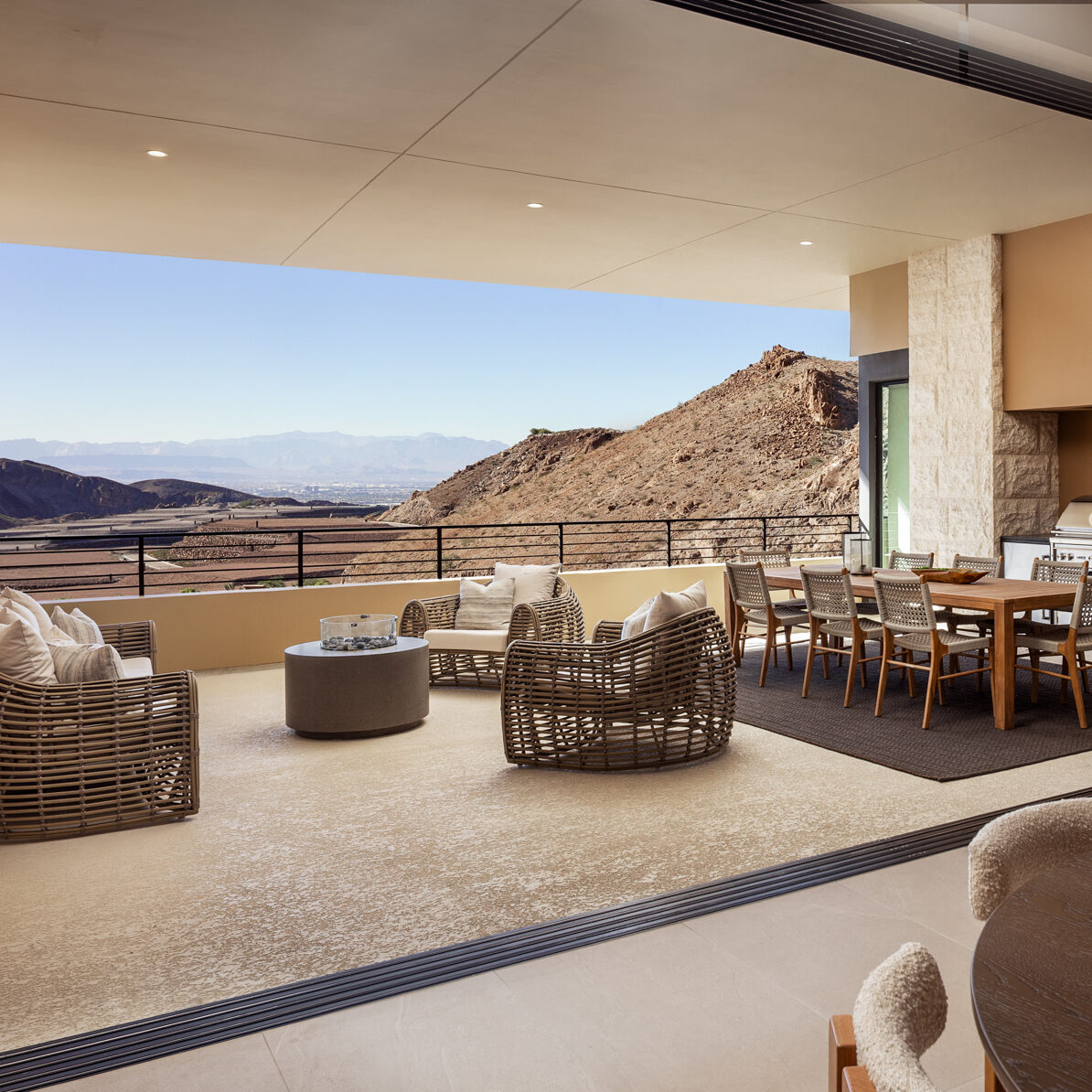 Located within the private gates of Ascaya, The Canyon Residences offer resort-style, lock-and-leave living designed and built by Blue Heron redefining condominium living in Las Vegas. This stunning 4BR Penthouse Residence features single-story living with sweeping canyon and mountain views, 12′ ceilings, motorized pocket doors and an expansive covered terrace with outdoor kitchen. Highlights include dual primary suites w/ fireplace & morning bar in the main primary. All bedrooms have en-suite baths & walk-in closets. The chef’s kitchen is equipped with Sub-Zero/Wolf appliances, glass-enclosed wine display and marble waterfall island. Brizo/Kohler fixtures, custom cabinetry, Crestron automation and a dual attached private garage complete the home. Exclusive access to five pools, wellness parks, maintenance services and Ascaya’s Clubhouse with fitness center, pool and tennis pavilion.