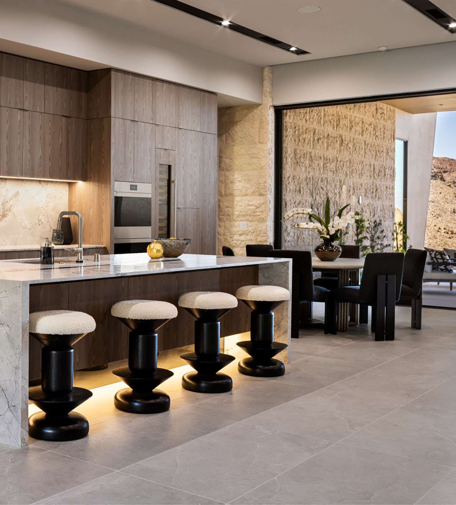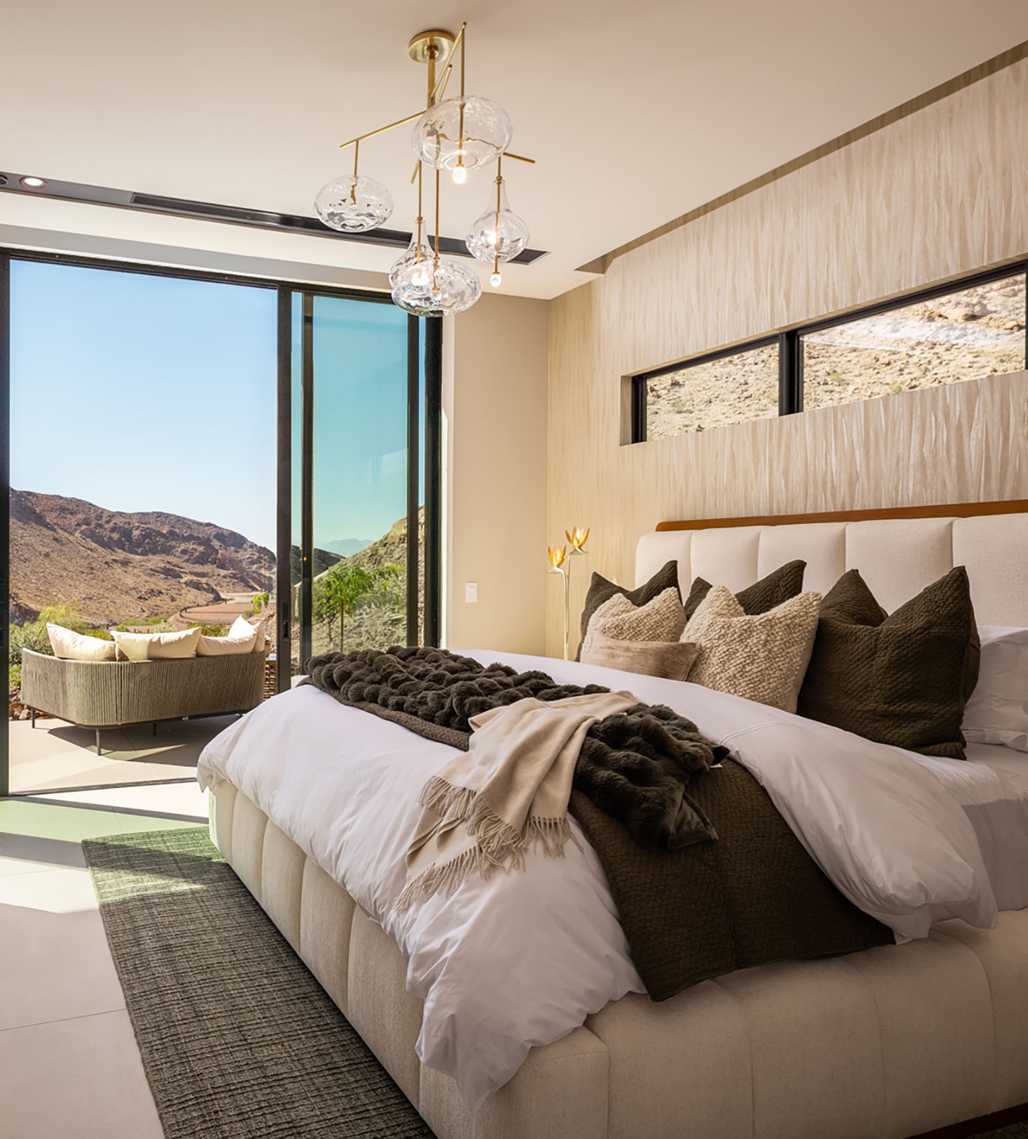 Nestled within the private gates of Ascaya, The Canyon Residences offer resort-style, lock-and-leave living designed and built by Blue Heron, redefining condominium living in Las Vegas. This 3BR Garden Residence offers sweeping canyon and mountain views, 12′ ceilings, motorized pocket doors, and an expansive covered terrace with outdoor kitchen. Highlights include dual primary suites w/ fireplace & morning bar in the main primary. All bedrooms have en-suite baths & walk-in closets. A chef’s kitchen with Sub-Zero/Wolf appliances, glass-enclosed wine display and Taj Mahal waterfall island is perfect for entertaining. Brizo/Kohler fixtures, custom cabinetry, Crestron automation and a dual attached private garage complete the home. Exclusive access to five pools, wellness parks, maintenance services and Ascaya’s Clubhouse with fitness center, pool and tennis pavilion.